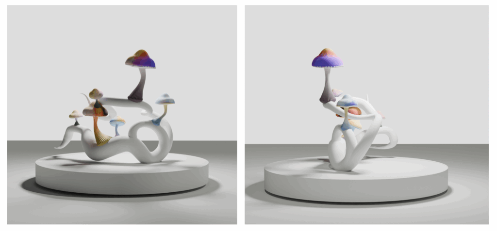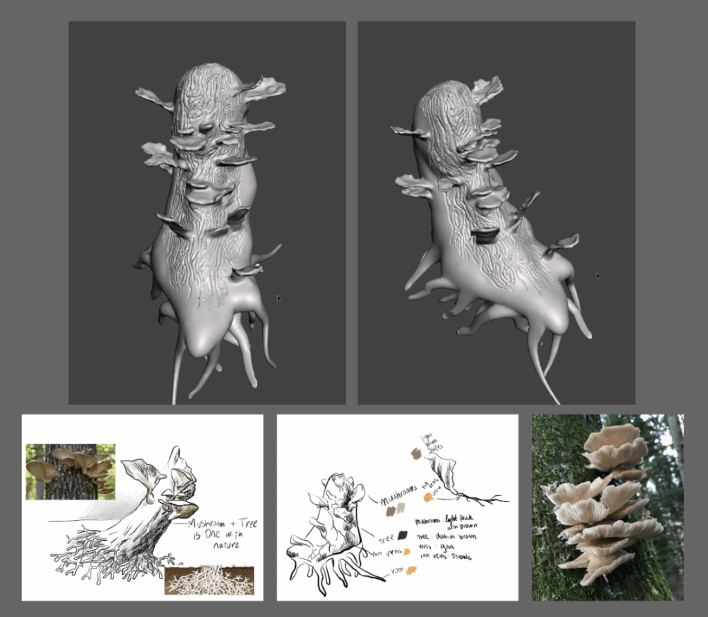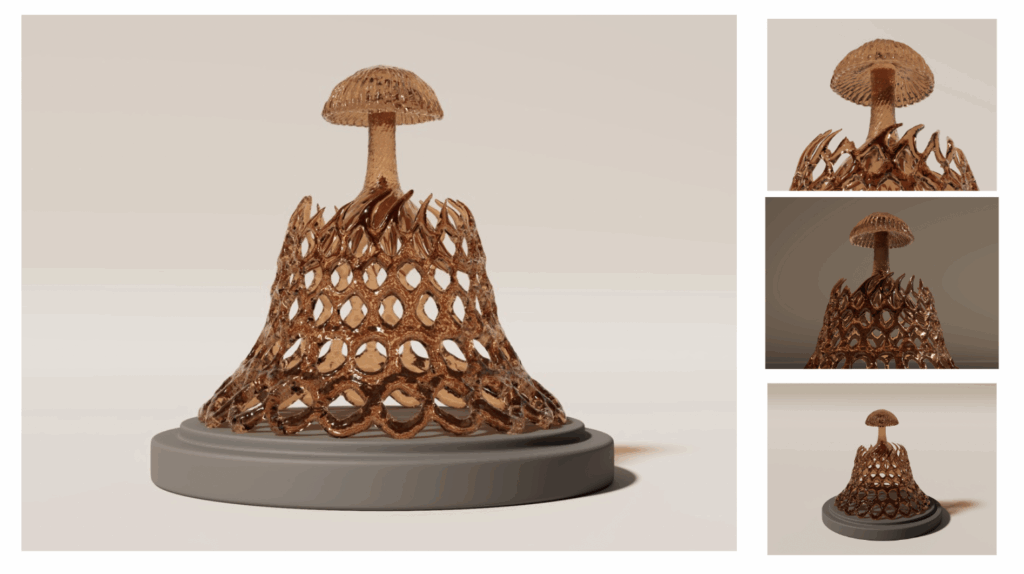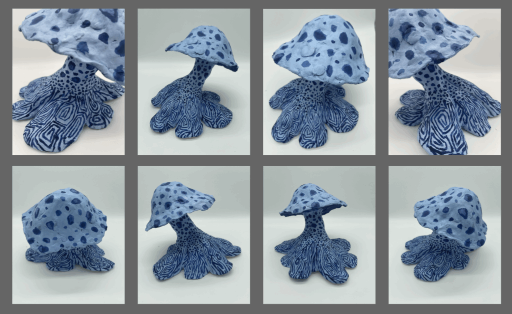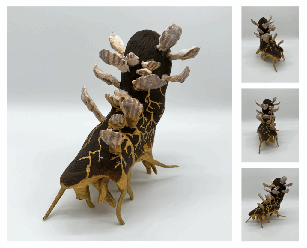 In the fascinating world of abstract mushroom sculptures I aim to bring attention to the often under-appreciated beauty and mystery of these natural forms. Through careful craftsmanship, I've created a series of sculptures that showcase various mushroom species in a visually striking, abstract manner, capturing their unique growth patterns. Some sculptures intertwine with tree life, while others take on enigmatic standalone structures. My goal is to invite viewers to reconsider mushrooms through the lens of abstraction, challenging preconceptions and highlighting the intricate forms and textures that make these fungi truly remarkable.( fungi truly unique abstract and surreal form)